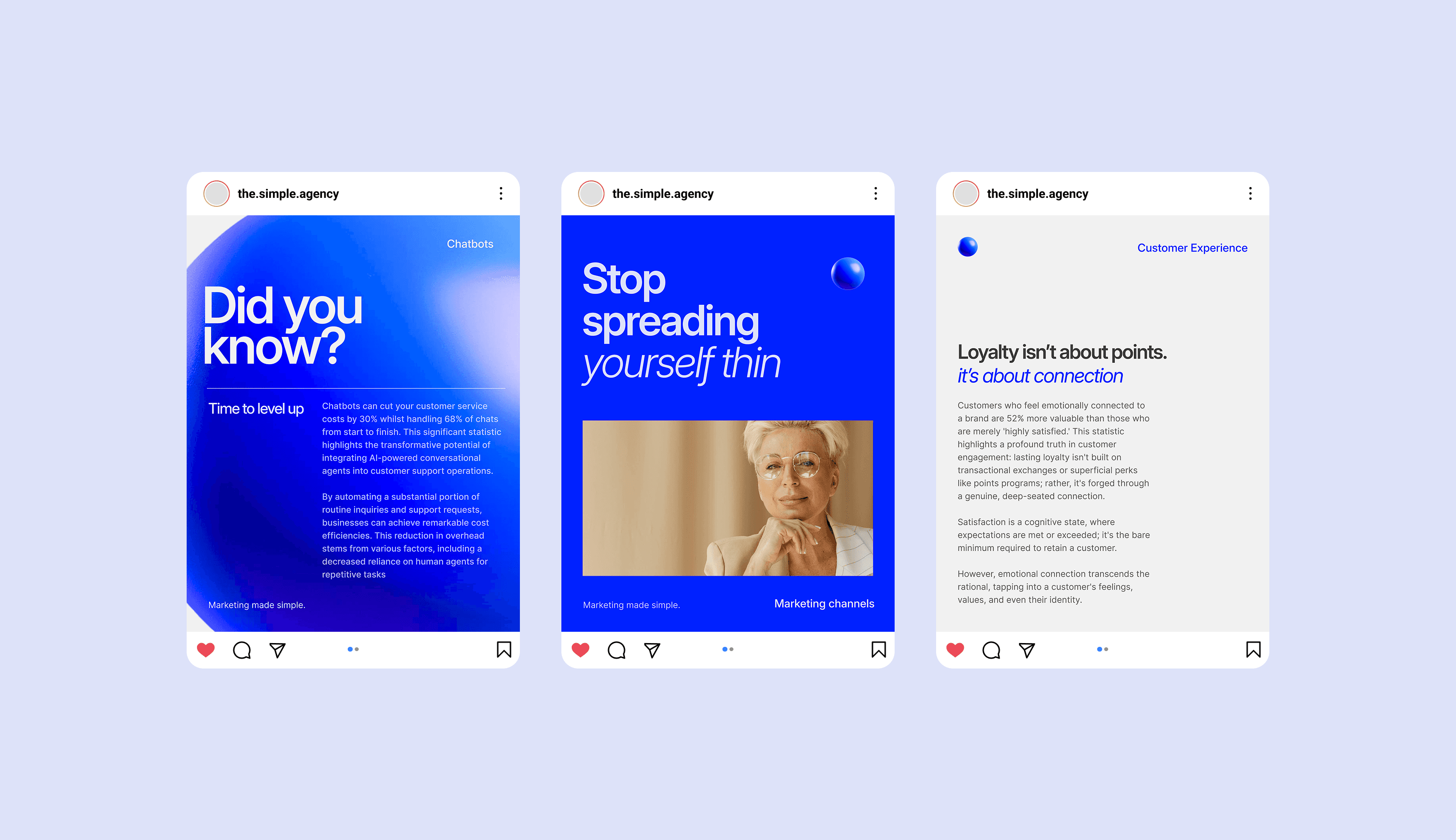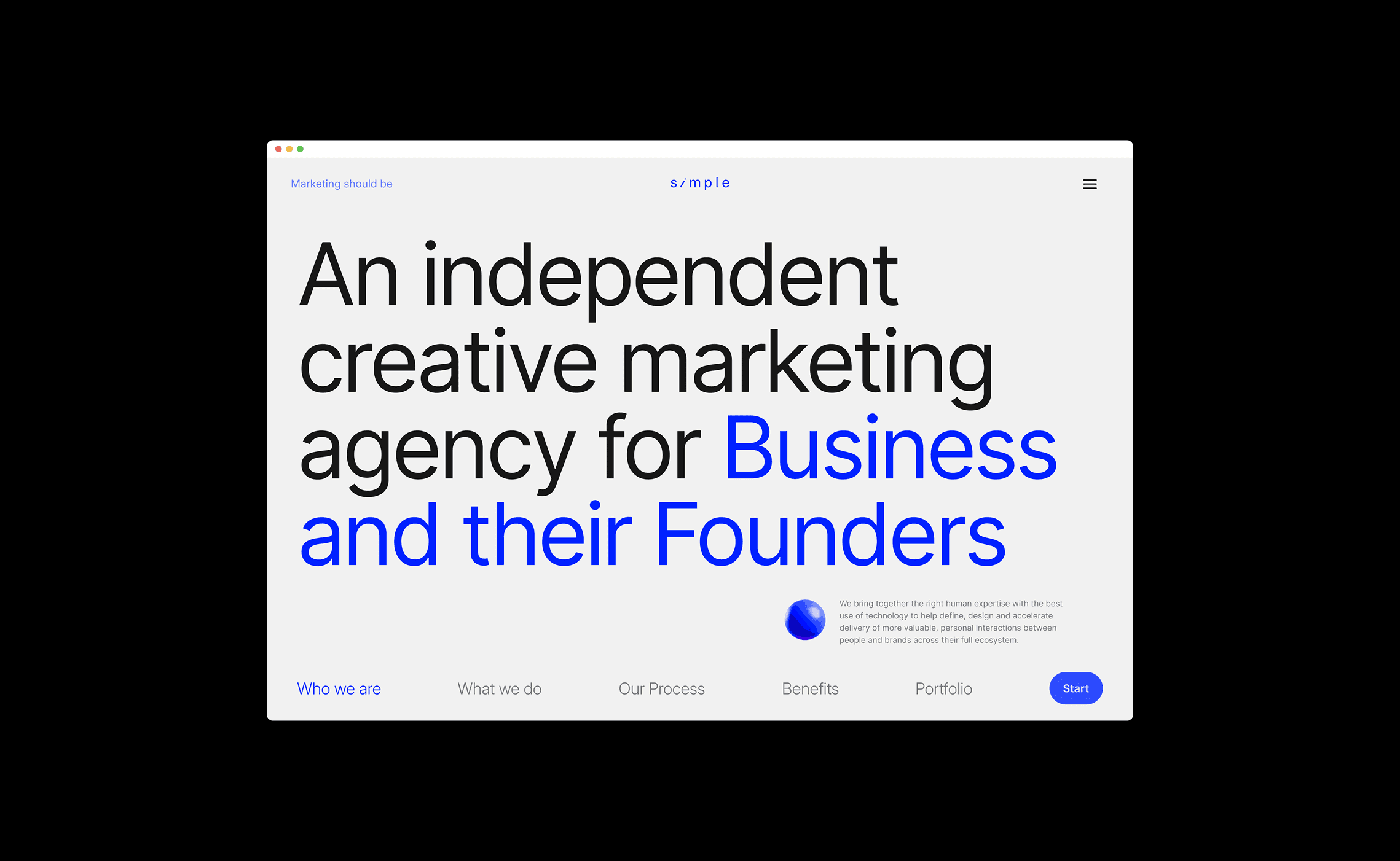 Simple is a newly created marketing agency in London, founded by two former marketing leaders from Meta and TikTok. When I joined the team as a Visual Designer, the agency already had an initial identity, but it felt restrained. It didn’t yet reflect their personality, their confidence, or the clarity of their thinking.